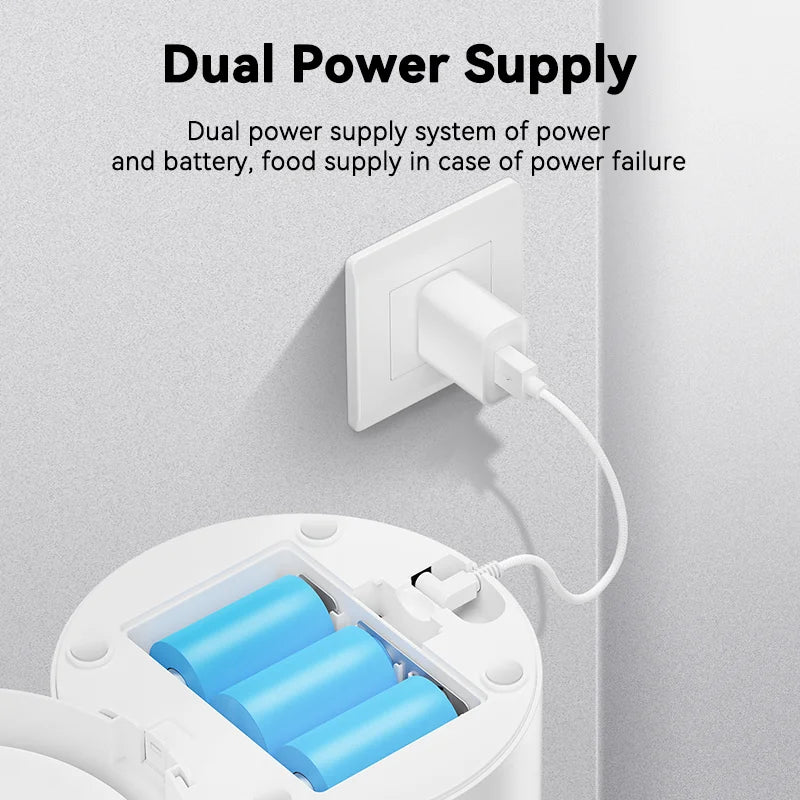 Crafted with a widened food outlet and 4-fold freshness locking technology, it keeps every bite fresh and prevents food jams. The dual power system ensures uninterrupted feeding even during power outages, while the easy-to-clean, detachable design makes maintenance simple.