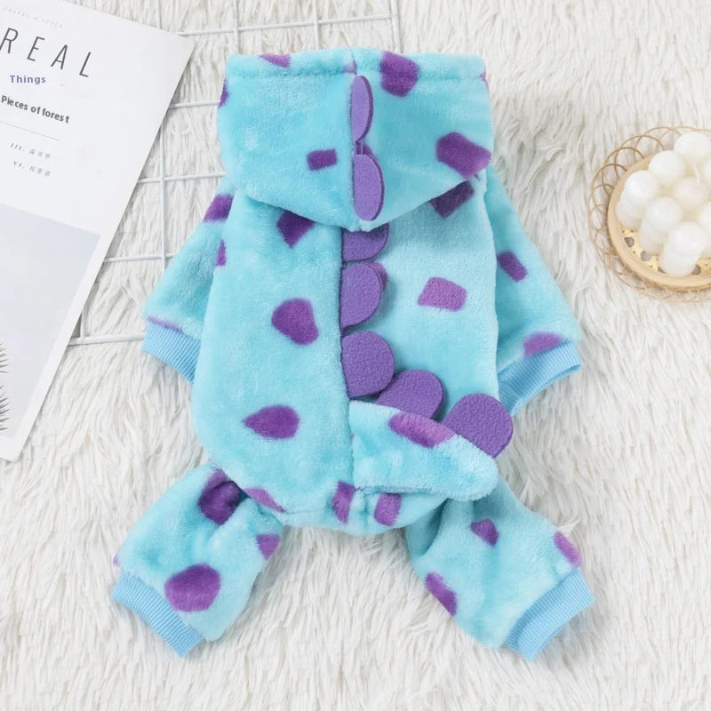 Keep your pet cozy and stylish with this plush insulated short-style outfit. Designed for dogs and cats, the soft polyester material provides comfort and warmth, while the playful flower dinosaur design adds a fun touch. Perfect for casual outdoor wear or lounging at home, this pet clothing combines practicality with a cute, fashionable look.