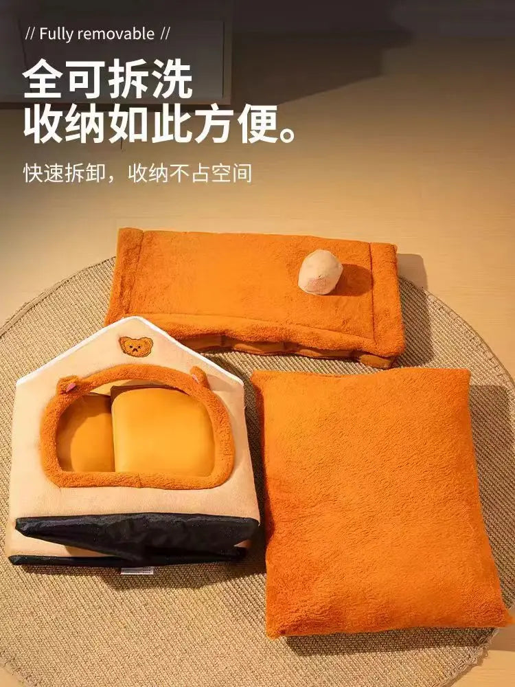 Create the perfect cozy spot for your furry friend with this spacious all-season pet house. Designed to fit pets of all sizes, it provides a warm and secure environment in winter and a breathable space during warmer months. Its roomy interior allows pets to stretch, relax, and sleep comfortably. Ideal for both cats and dogs, this bed is a versatile choice for year-round comfort and restful sleep.